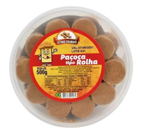 Paçoca Rolha Desembalada Pote 500g Doces Macedo, tradicional doce de amendoim tipo rolha, produzida com ingredientes selecionados de altíssima qualidade, ideal para sobremesas e lanches, sempre presente em festas juninas, São João, Dia das Crianças, etc. Pote de 500g com 26 unidades de 20g.